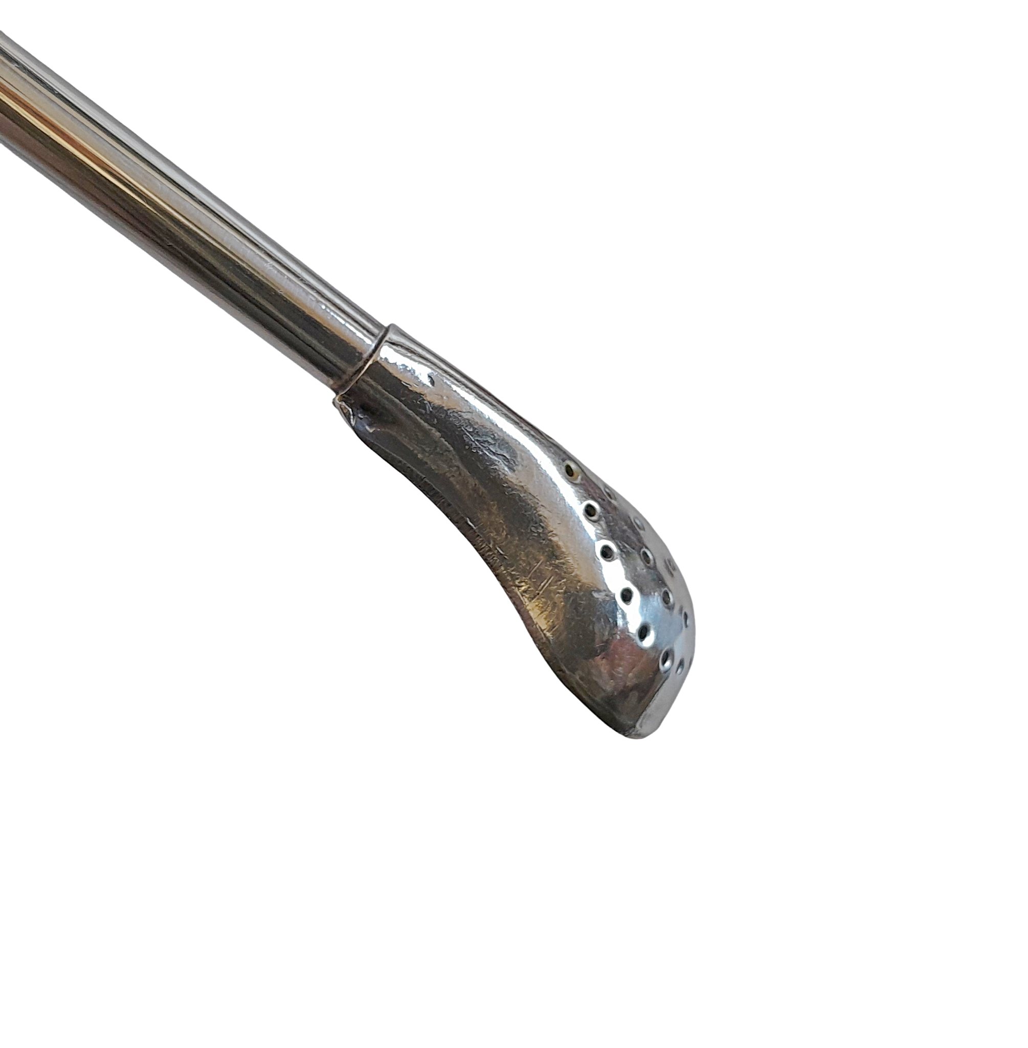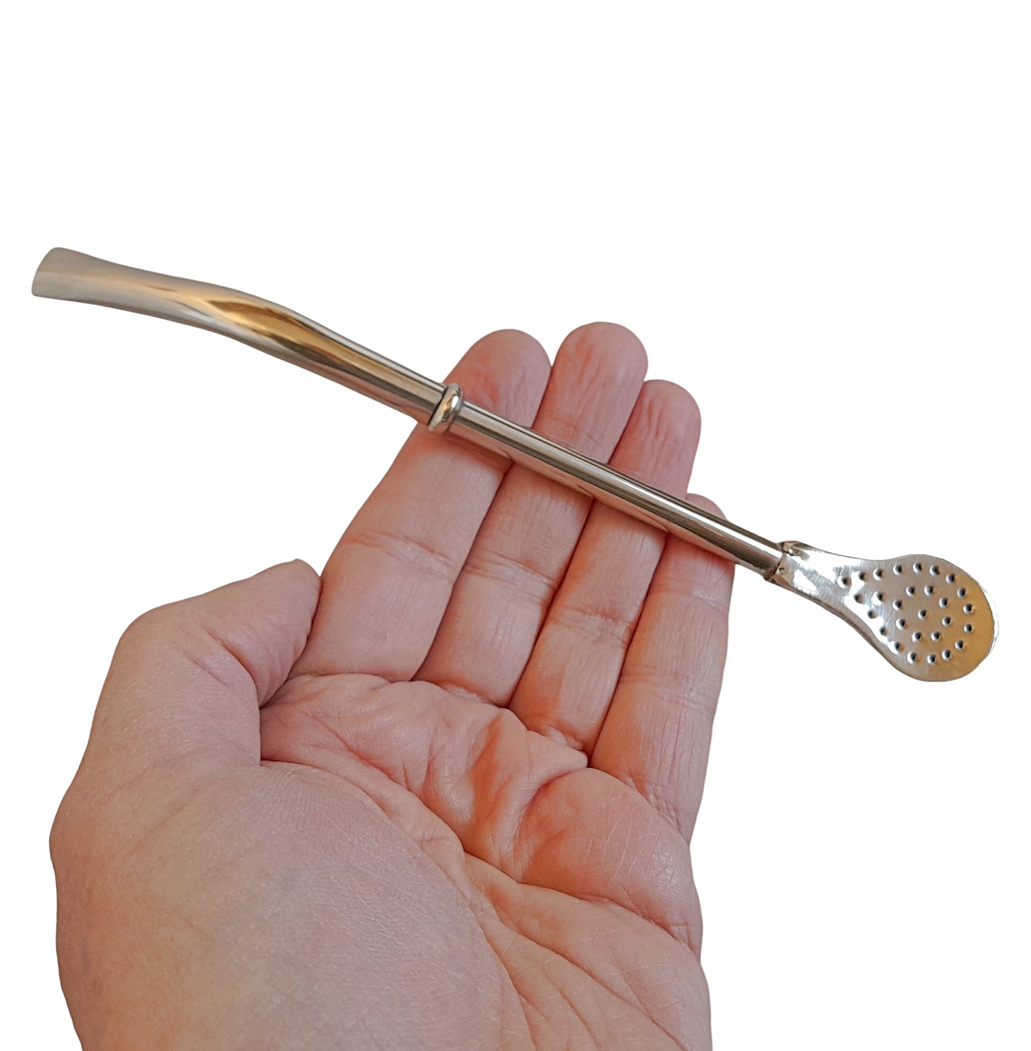 Crafted by skilled artisans in Buenos Aires, Argentina, this 19 cm handmade bombilla made from premium alpaca silver offers both functionality and elegance. Its refined, polished design complements medium and large yerba mate gourds, especially traditional torpedo-style cups.