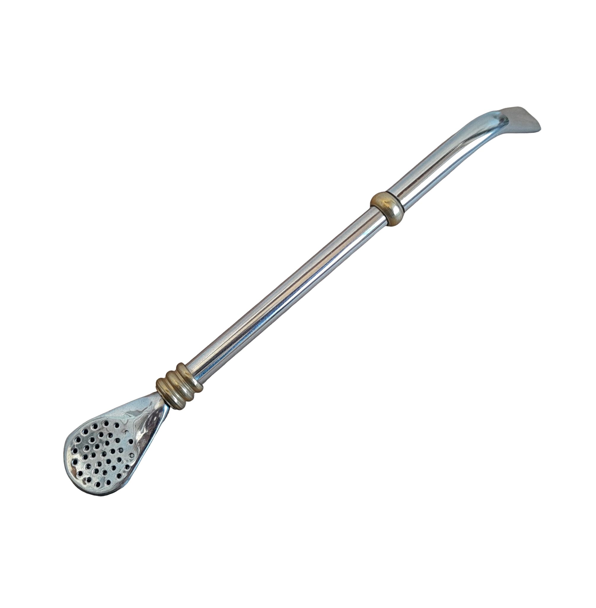 Stainless Steel “Pico de Loro” Bombilla – 21 cm Curved Mate Straw with Detachable Spoon Filter