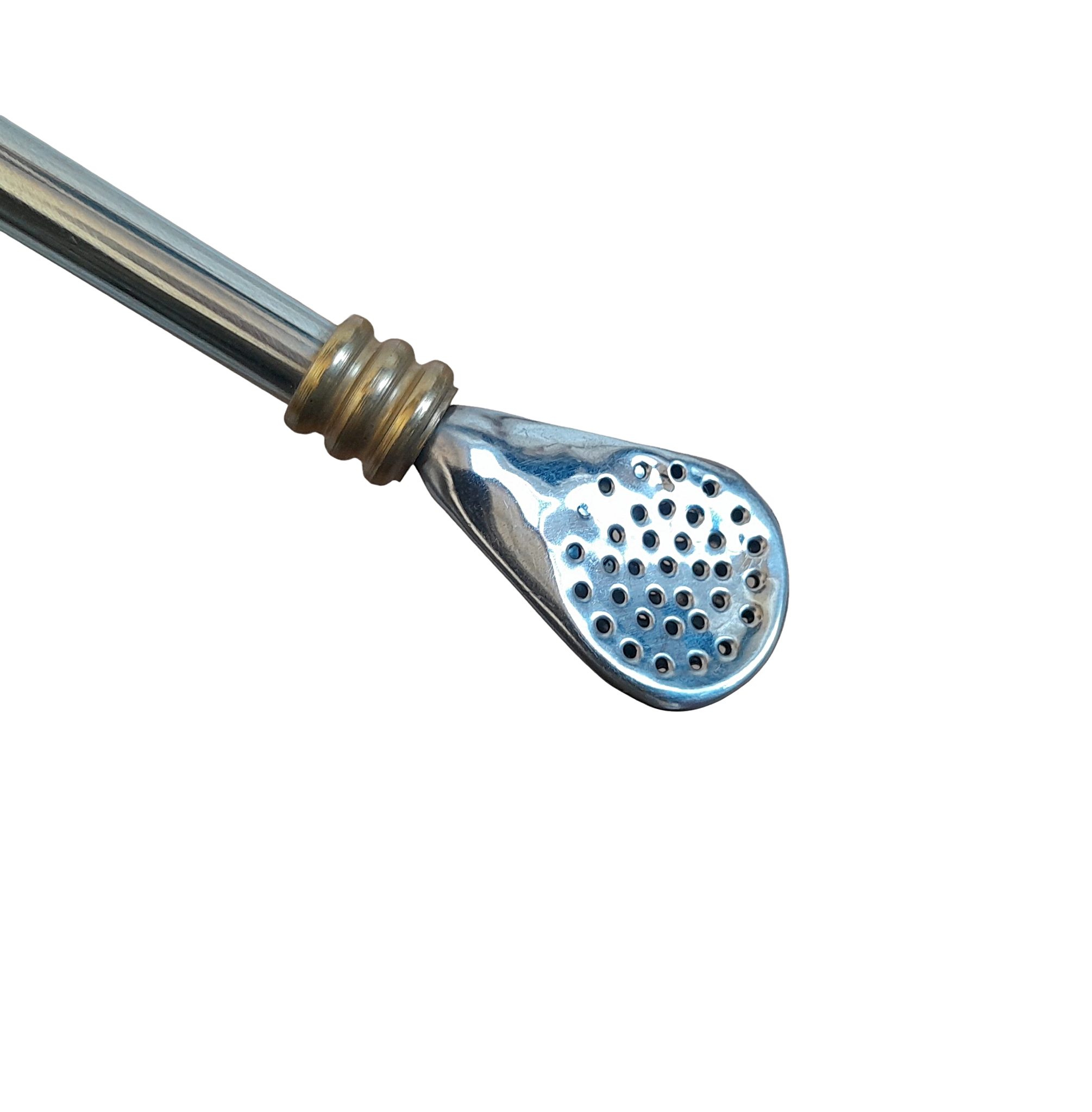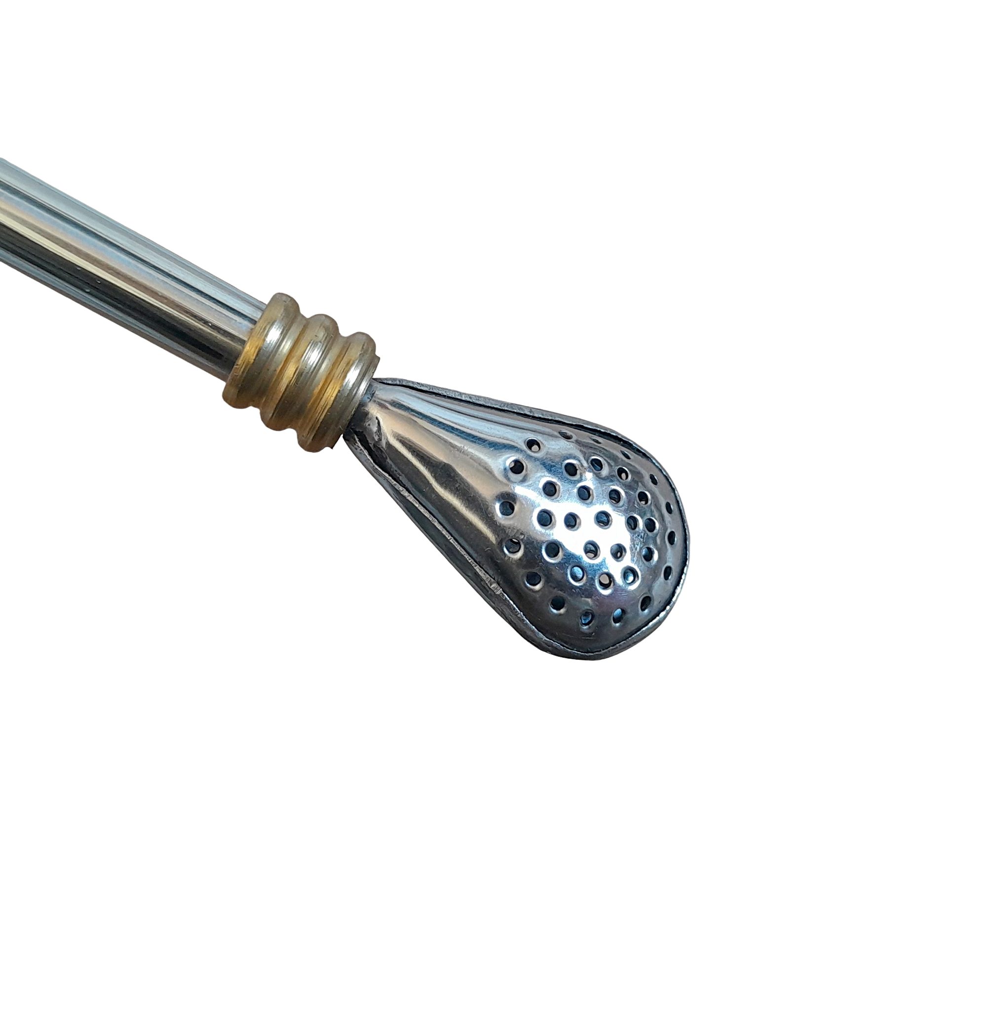 The spoon-shaped filter tip unscrews for easy cleaning and is made from a single piece of metal, ensuring excellent durability and a steady, smooth flow of yerba mate. The golden accent rings add a subtle, traditional touch, making it both functional and beautiful.